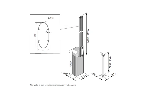 - Die Schrankenbaumlänge kann direkt vor Ort individuell gekürzt werden.